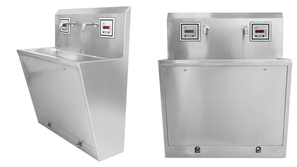 Optional scrub timers guide the medical team of workers through the right hand-washing period.